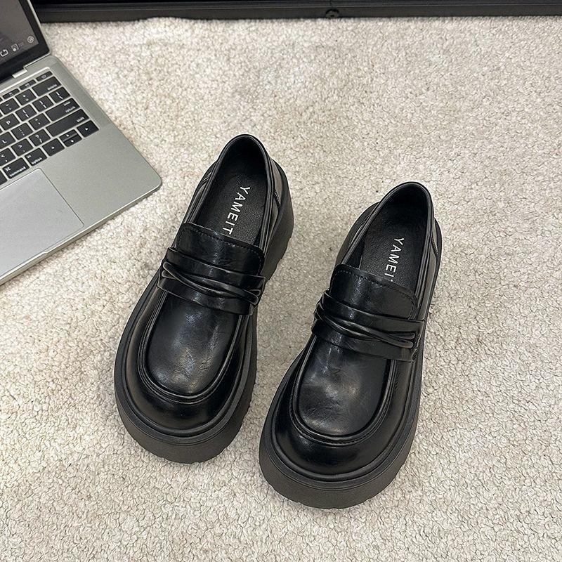 New British style retro height increase small loafer single shoes fashionable versatile muffin platform small leather shoes women