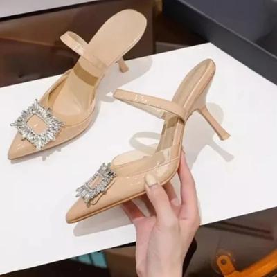 Pointed thin heel versatile rhinestone design sense women's sandals summer new French skirt high heels women