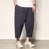 Men's Summer Loose Fit Linen Capri Pants - Solid Color, Plus Size, Chinese Style Casual Trousers