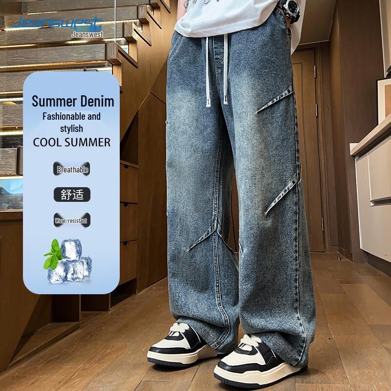 JEANSWEST Men's Loose Straight Wide-Leg Denim Jeans