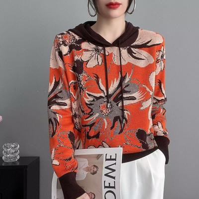 Suéteres Casuais Femininos Moda Outono Inverno Estampa Floral Manga Longa com Capuz