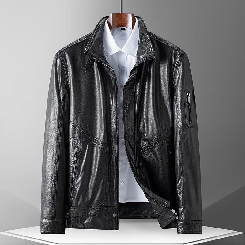 FAPAI Men's Genuine Leather Stand-Collar Jacket