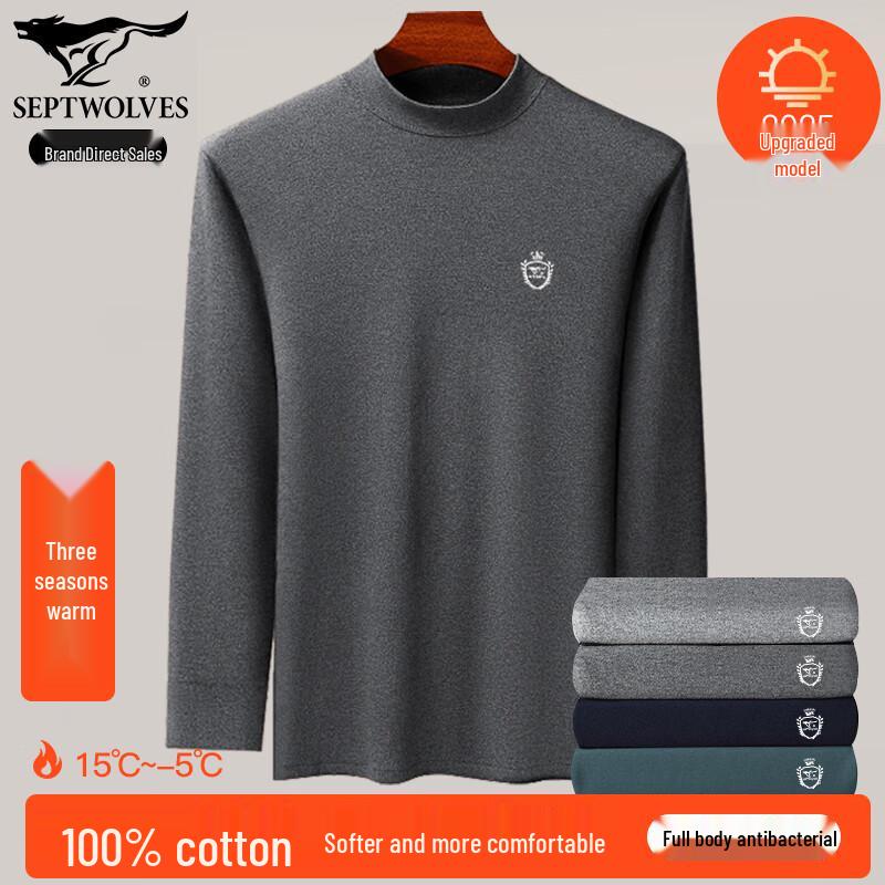Septwolves Men's Pure Cotton Mock Neck Thermal Base Layer