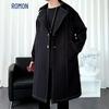 ROMON Men's Business Casual Mid-Length Wool Blend Style Overcoat