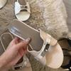 Sheepskin~ French open-toed crocodile leather metal buckle flat-bottomed slippers for women in summer, one-word beach sandals for women