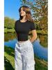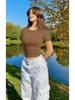 Women's Versatile Short Sleeve Round Neck Ruffle Slim Fit Crop Top