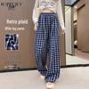 Women's Elastic Waist Plaid Wide-Leg Casual Pants