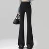 Qiusyiren Women's High-Waist Black Flare Casual Pants