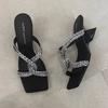 New Style Luxury Sandals Slim Heels Sandals Summer Twisted with Diamonds Square Toe High Heels Worn on The Outside Zapatos Mujer