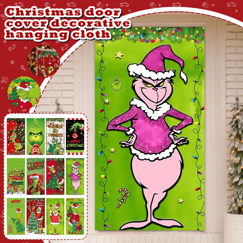Capa de Porta de Natal Pano Decorativo Pendurado Capa de Porta Verde Cortina de Porta de Natal Tapeçaria de Ano Novo Fundo de Capa de Porta