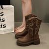 Brown embroidered retro western cowboy boots women's 2025 new summer V-mouth knight boots thick-soled thin short boots