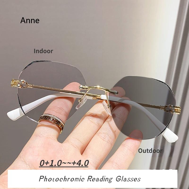 Anti Blue Light High-definition Far Sight Eyeglasses Photochromic Frameless Reading Glasses Fashion Cut Edge Reading Eyewear