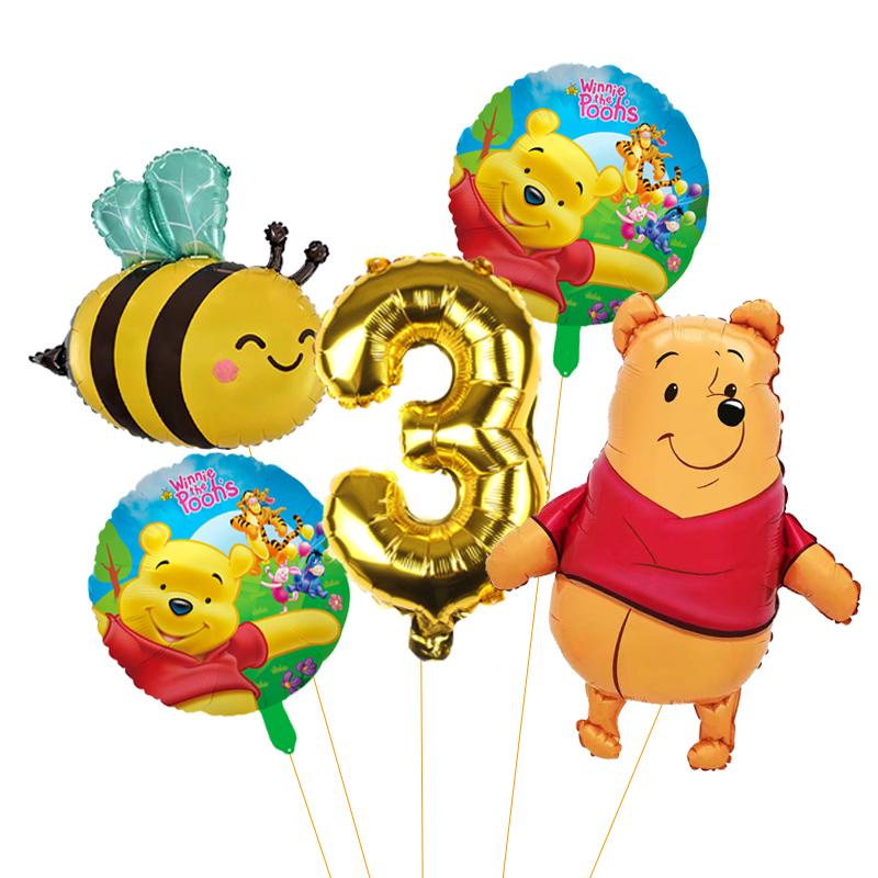5 unidades Balão de Abelha Desenho Animado Winnie The Pooh Suprimentos para Festa Winnie Balões de Festa de Urso para Chá de Bebê Decorações de Festa de Aniversário