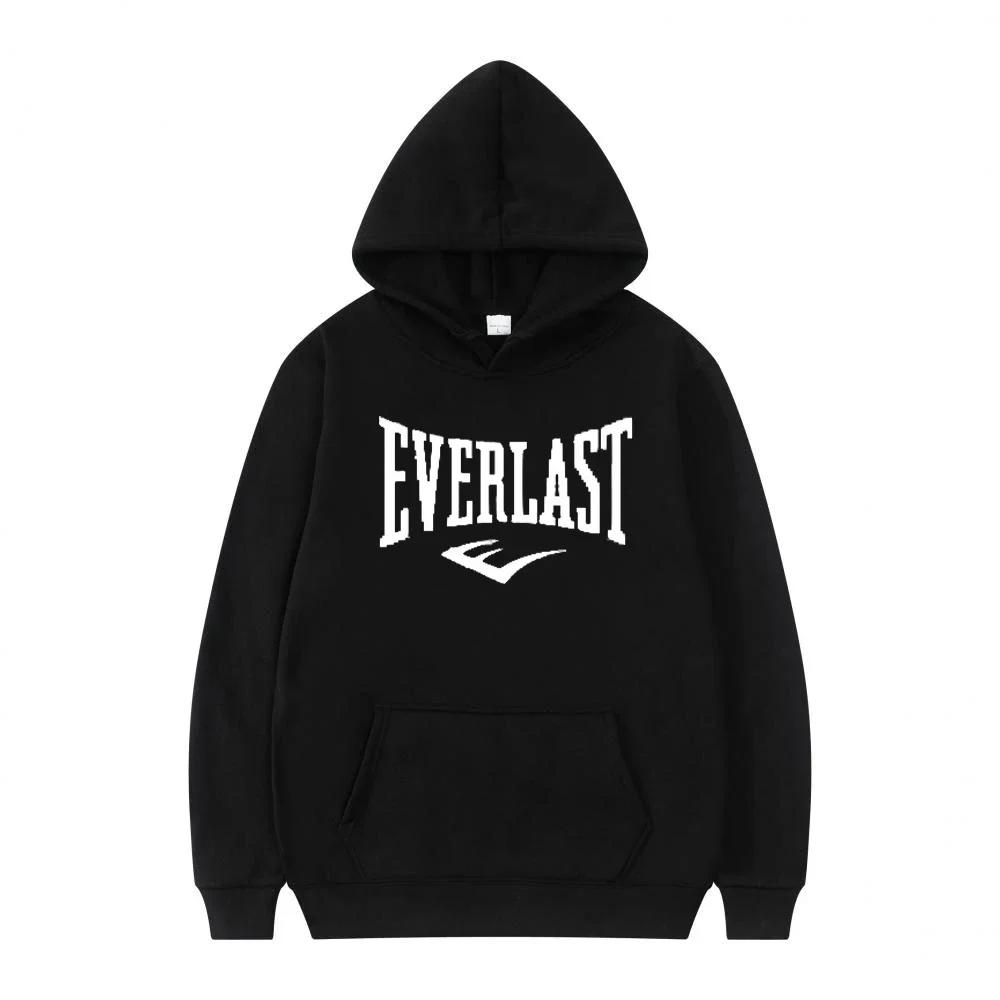 New men's casual, sporty and comfortable hooded sweatshirt with letter-printed EVERLAST jogging street casual pullover