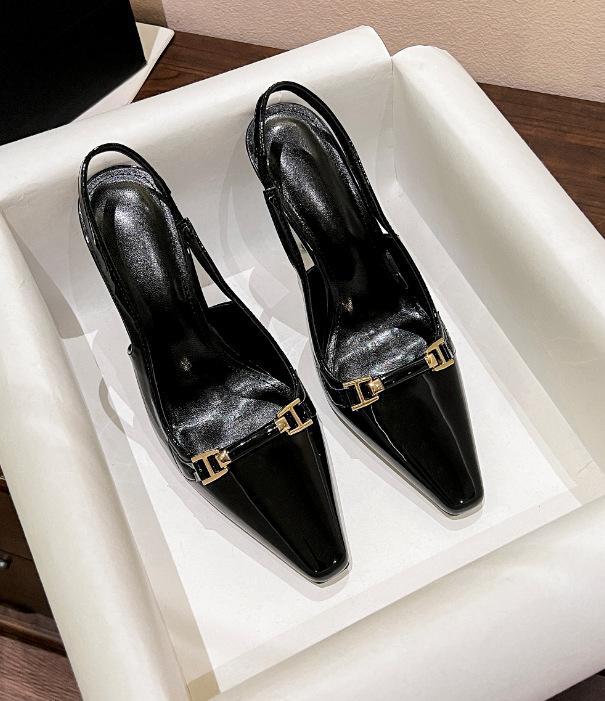 Sapatos de salto alto preto femininos 2025 outono e verão couro envernizado bico quadrado salto fino profissional sexy nicho francês sapatos únicos salto grosso
