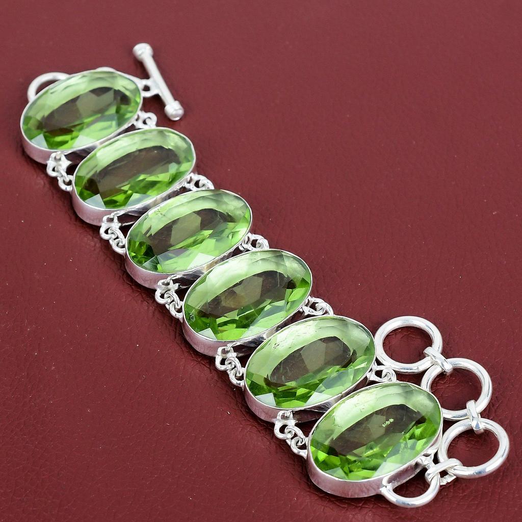 Faceted green amethyst bracelet 925 sterling silver bracelet adjustable chain bracelet real gemstone bracelet handmade jewelry gifts for him
