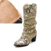 Sapatos Femininos de PU com Estampa de Cobra de Alta Qualidade com Salto Grosso Botas de Inverno Femininas Moda Botas Quentes Estampadas Tamanho Grande