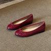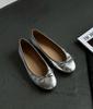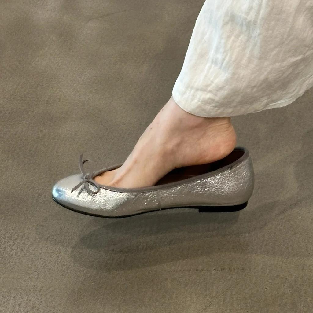Leather retro gentle wind bow ballet shoes French silver round head flat bottom light mouth single shoes soft sole grandma shoes