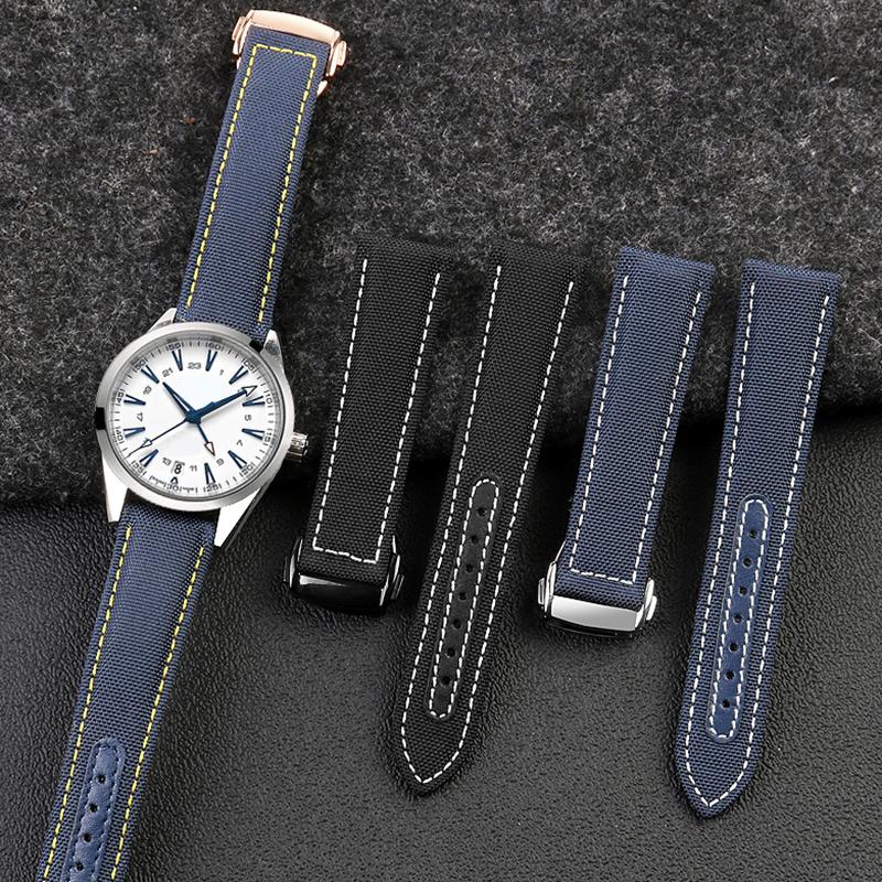 19mm 20mm Woven Canvas Watch Band Strap For Omega Seamaster 300 AT150 Fabric Leather Nylon AQUA TERRA 150 Blue Black Watchband