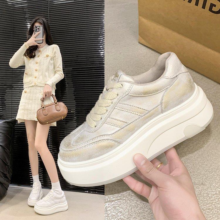 Leather polished platform Internet celebrity white shoes women's 2025 autumn new heightening lightweight board shoes casual sports women's shoes tide