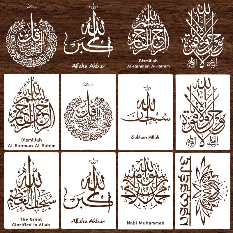 Islam Roteiro Árabe Estêncils DIY Pintura de Parede Scrapbook Relevo Álbum Papel Cartão Modelo Decoração Ramadan Eid Mubarak Bismillah