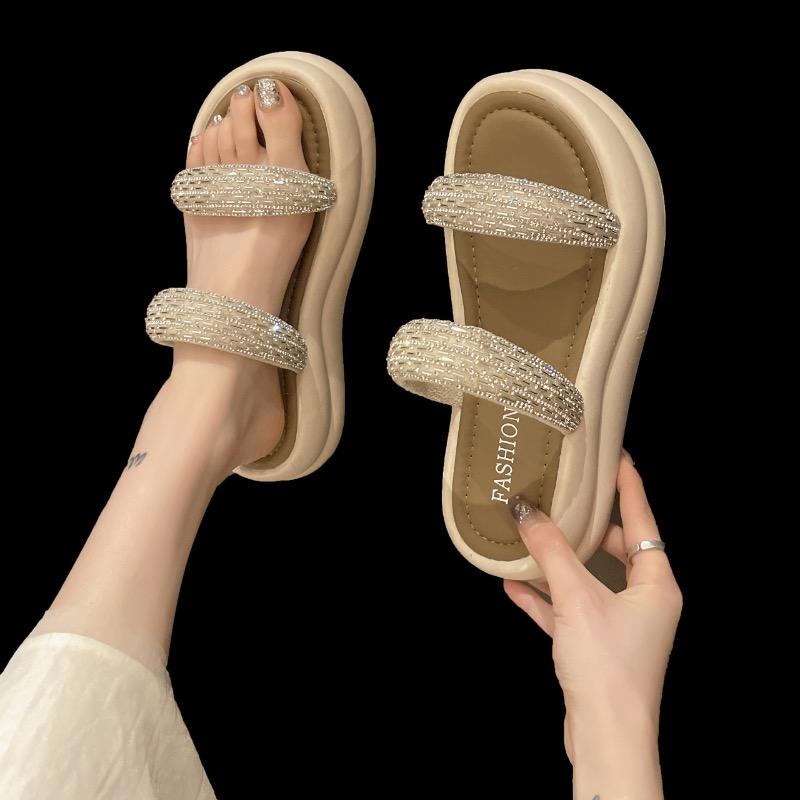 2025 Summer New Women's Slippers Rhinestone Leisure Slippers Non Slip Platform Slippers for Women Casual Beach Sandalias