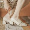 2024 Hot Selling Novos Sapatos de Salto Alto Feminino Outono Salto Grosso Brilhante Sapatos de Designer Sapatos Femininos da Moda Mocassins de Bico Quadrado