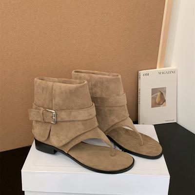2025 novas botas de salto grosso com biqueira cáqui botas curtas botas femininas verão com saia botas western sandálias de verão