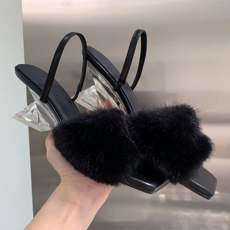 Fur Women Slippers Mid Heels Designer Shoes Dress New Woman Sandals 2025 Summer Elegant Pumps Luxury Zapatillas De Mujer