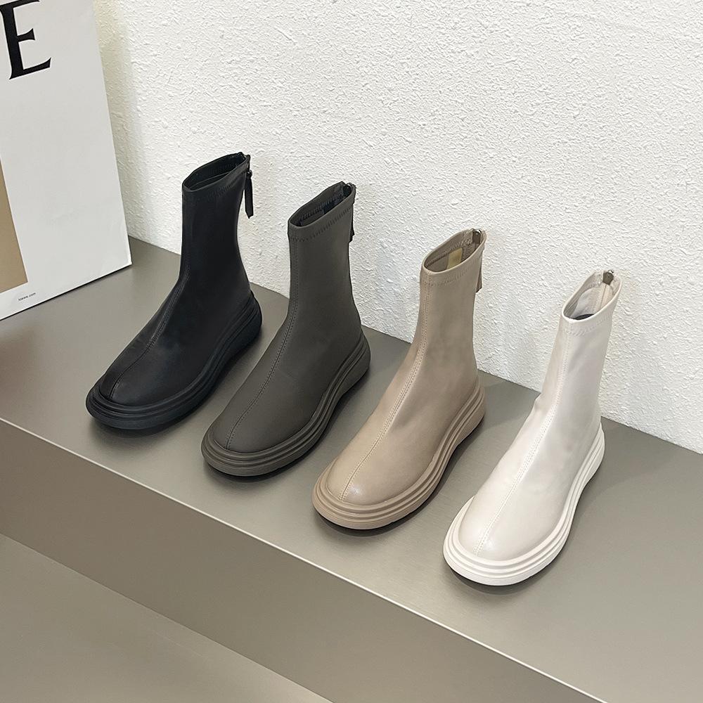 2025 Spring and Autumn New Platform Boots Women's Martin Boots White Single Boots Skinny Boots Women's Chelsea Boots Women's Short Boots