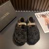 2025 autumn and winter new two wear pearl bow fluffy shoes women wear round head one pedal slippers lazy shoes