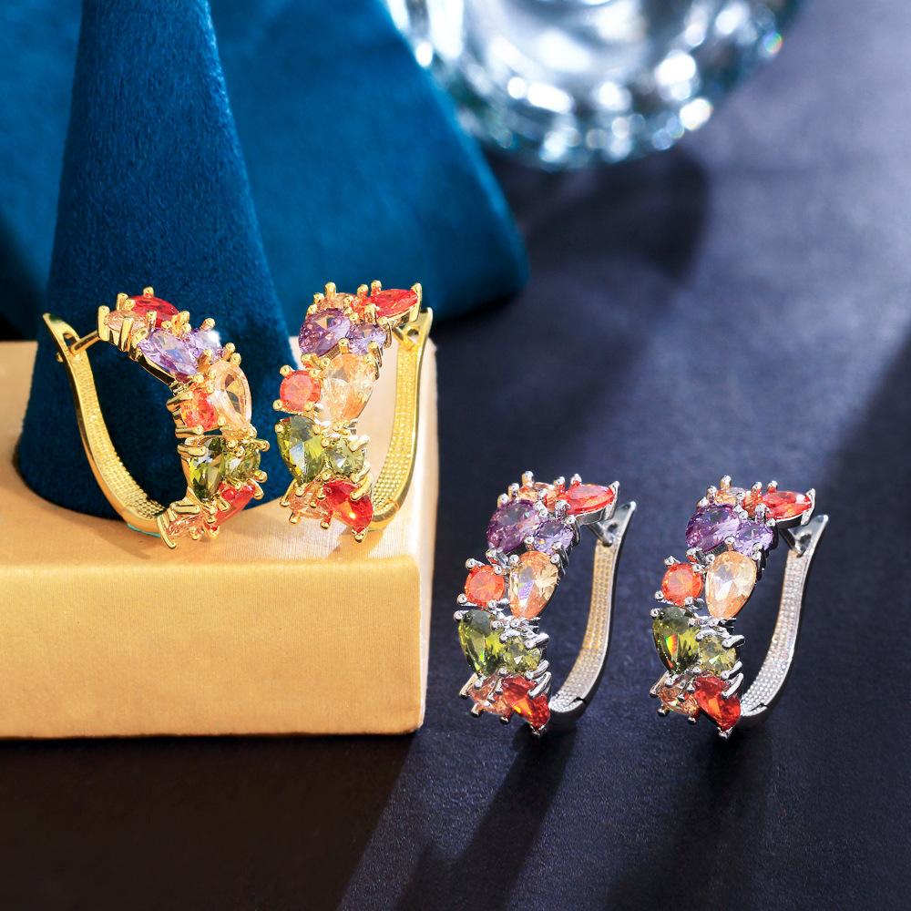 Mona Lisa Color Zircon Ear Buckle Premium Copper Set Crystal Stud Earrings