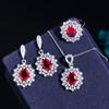 Necklace, Earrings, Ring, Ruby Three-Piece Chain, Micro-Zircon Popular Jewelry.