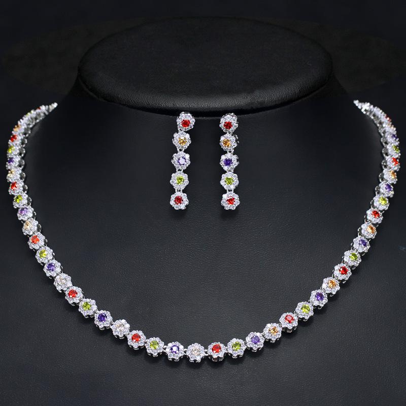 Classic Zircon Bridal Set, Exquisite Workmanship Micro-Inlaid Zircon Necklace Earrings Two-Piece Set