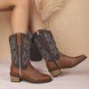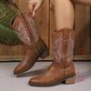 New large size embroidered fashion tall knight boots thick heel side zipper pointed western cowboy boots