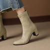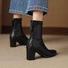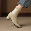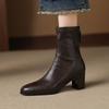 New women's beef tendon soft-soled fashion boots, leather high-heeled round head large-size women's boots, zipper mid-boots after autumn and winter