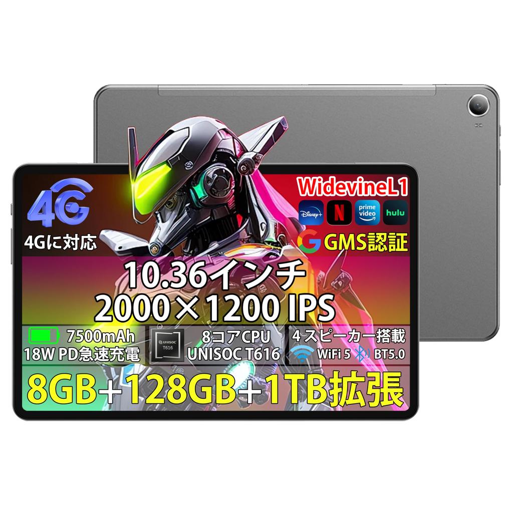 [2023 New Android Tablet] N-ONE Npad Pro Android 12 Tablet, 10-inch, Wi-Fi Model + 4G LTE, 8GB RAM + 128GB ROM + 1TB Expandable, UNISOC 2.0GHz Octa-Core CPU, 10.36-inch 2K HD IPS Display, 5MP/13MP High-Resolution Cameras + GMS Certified + 18W PD Fast Charger + 7500mAh High-Capacity Battery + Bluetooth 5.0 + 2.4G/5G WiFi + Japanese Instruction Manual Included