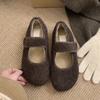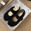 Gray~ very gentle and advanced! Hairy shoes women wear warm autumn and winter flat Mary Jane velvet cotton shoes