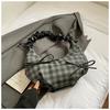Korean version bow pleated hand bag new shoulder bag foreign style plaid commuter messenger bag casual crescent bag tide