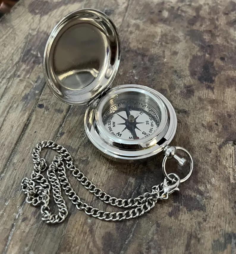Engraved Brass Pocket Compass: Nautical Marine Navigation with Leather Case
