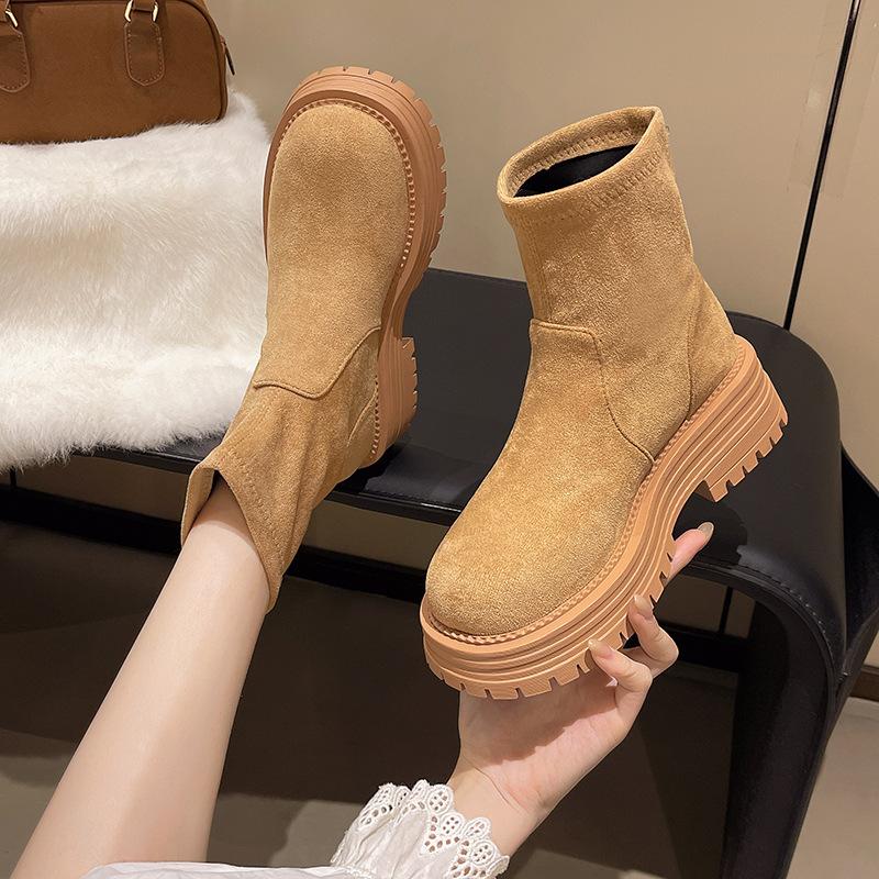 Cylinder thick-soled short boots women's 2025 autumn and winter new Martin boots fashion versatile Internet celebrity ins tide elastic thin boots
