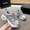 2025 spring and summer leather thick-soled breathable mesh heightening dad shoes space silver thick-soled casual sports shoes women's shoes