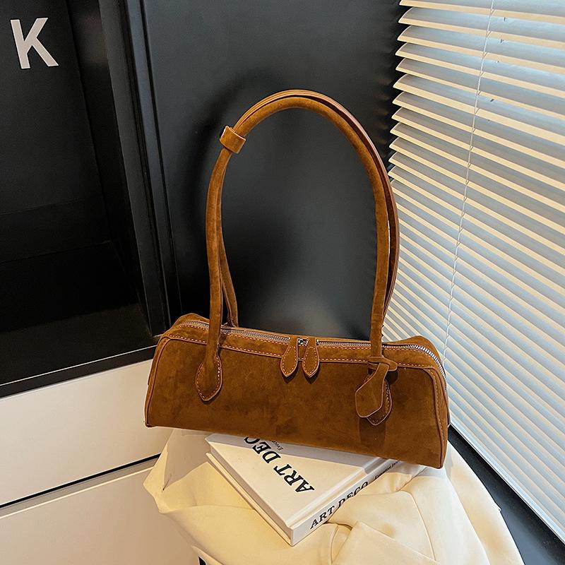 Bolsa feminina retro francesa de camurça premium fosca nova 2025 bolsa de axila bolsa de bastão de lei bolsa de ombro