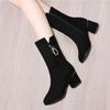 New autumn and winter velvet thickened warm women's fashion thick heel medium tube thick heel boots white and comfortable two options