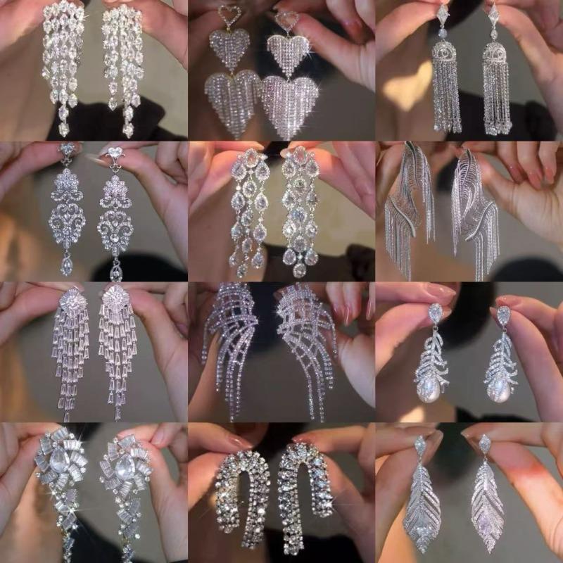 European and American Silver Needle Full Diamond Irregular Earrings Exquisite Luxury Design Earrings Niche Versatile Earrings