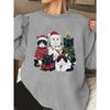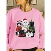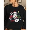 Moletom Feminino Estampado com Padrão de Gato Natalino Outono e Inverno da Moda Confortável Top de Gola Redonda Roupa Casual