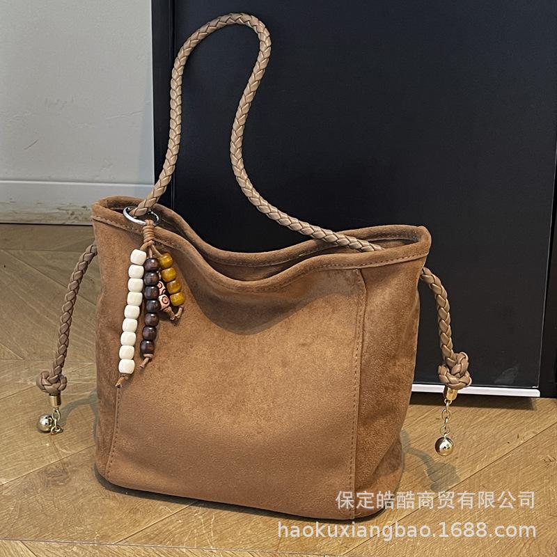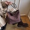 Suede bag women's large capacity 2025 new autumn and winter retro messenger bag popular commuter bucket bag this year