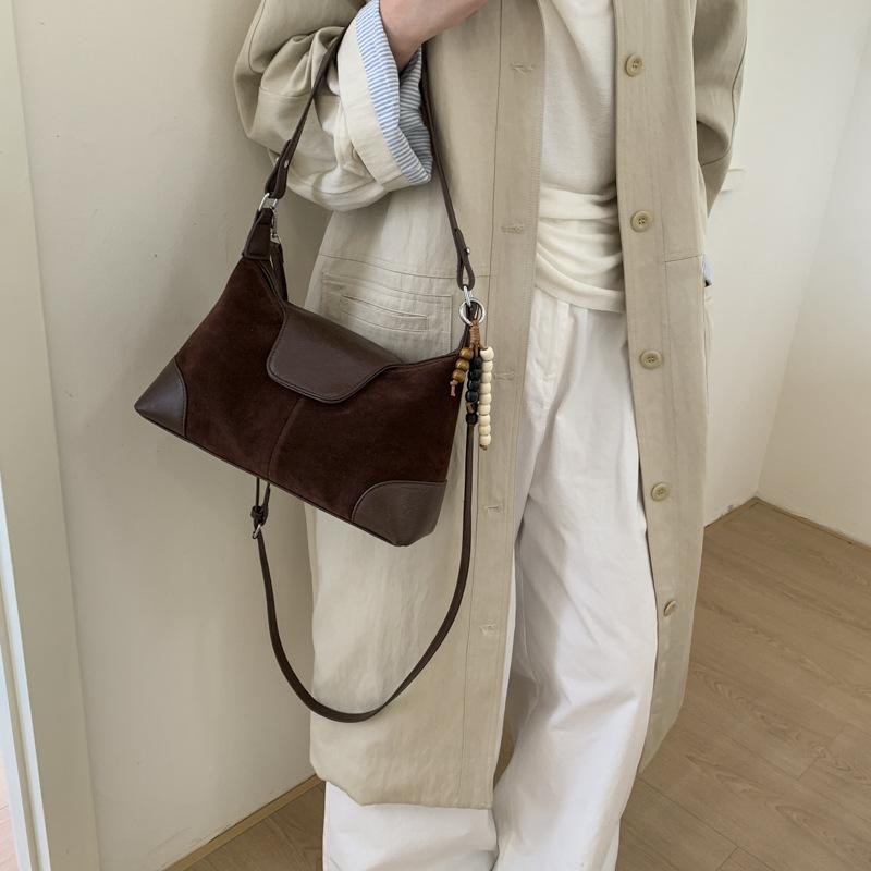 Large capacity retro suede underarm bag women's new trendy shoulder bag fashionable versatile commuter tote bag