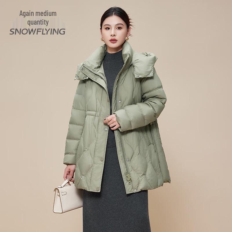 SNOWFLYING Jaqueta de Penas Feminina Slim Fit Comprimento Médio com Capuz