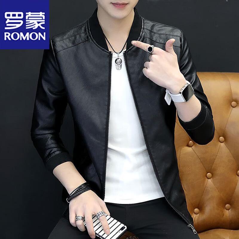 Romon Men's Slim Fit Stand Collar Leather Jacket